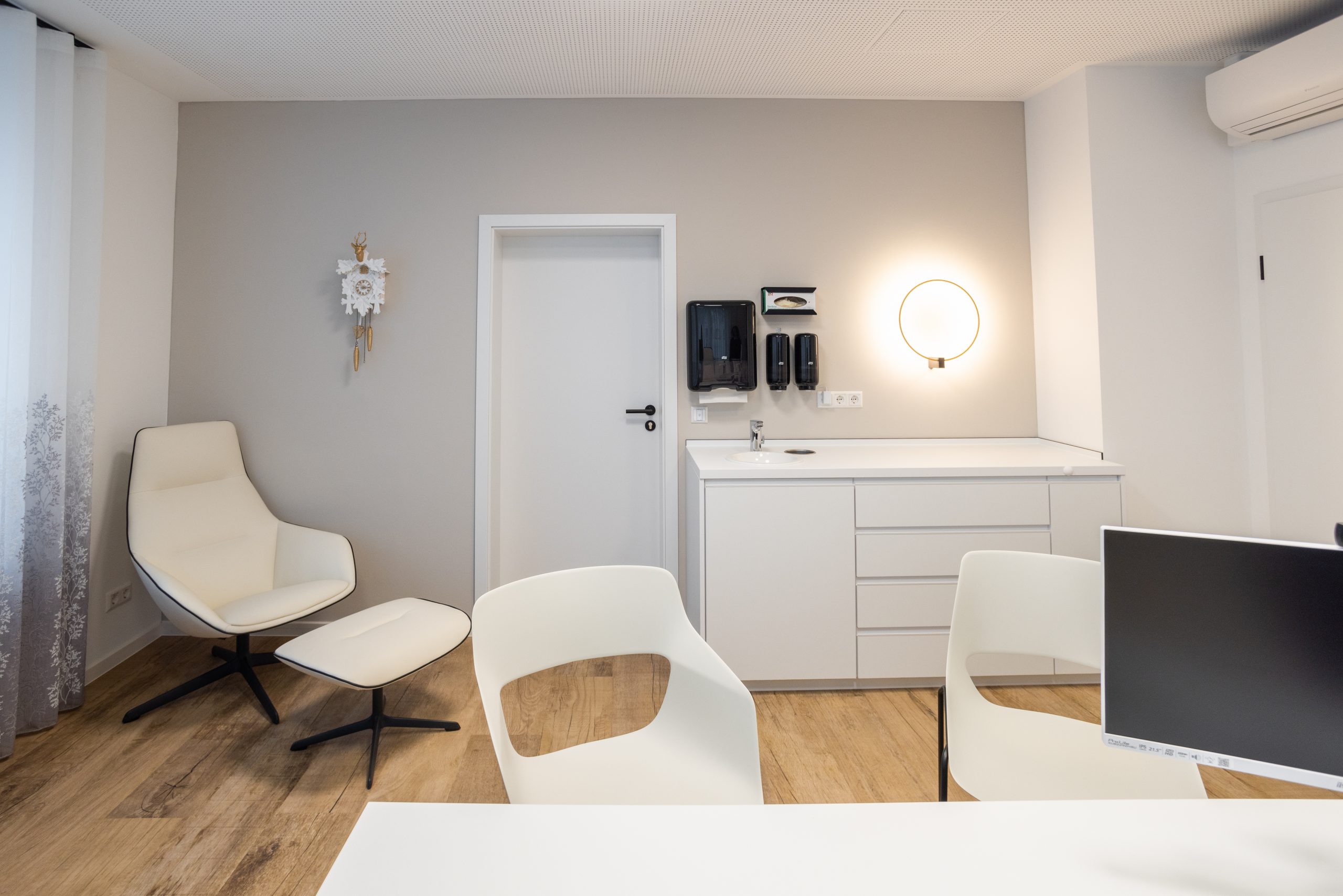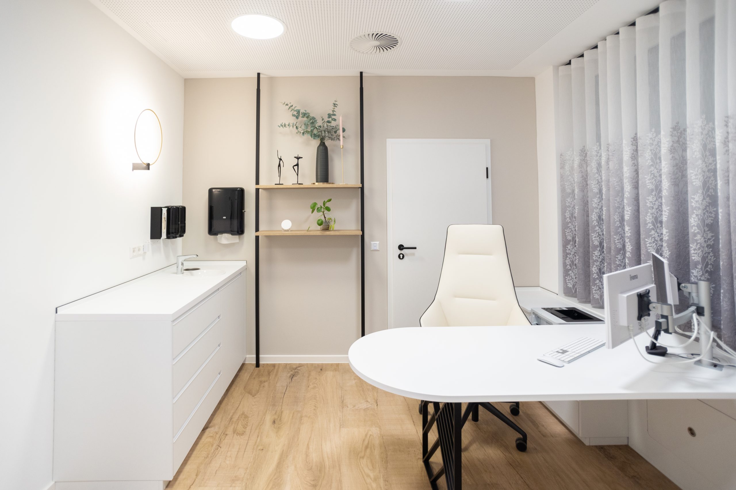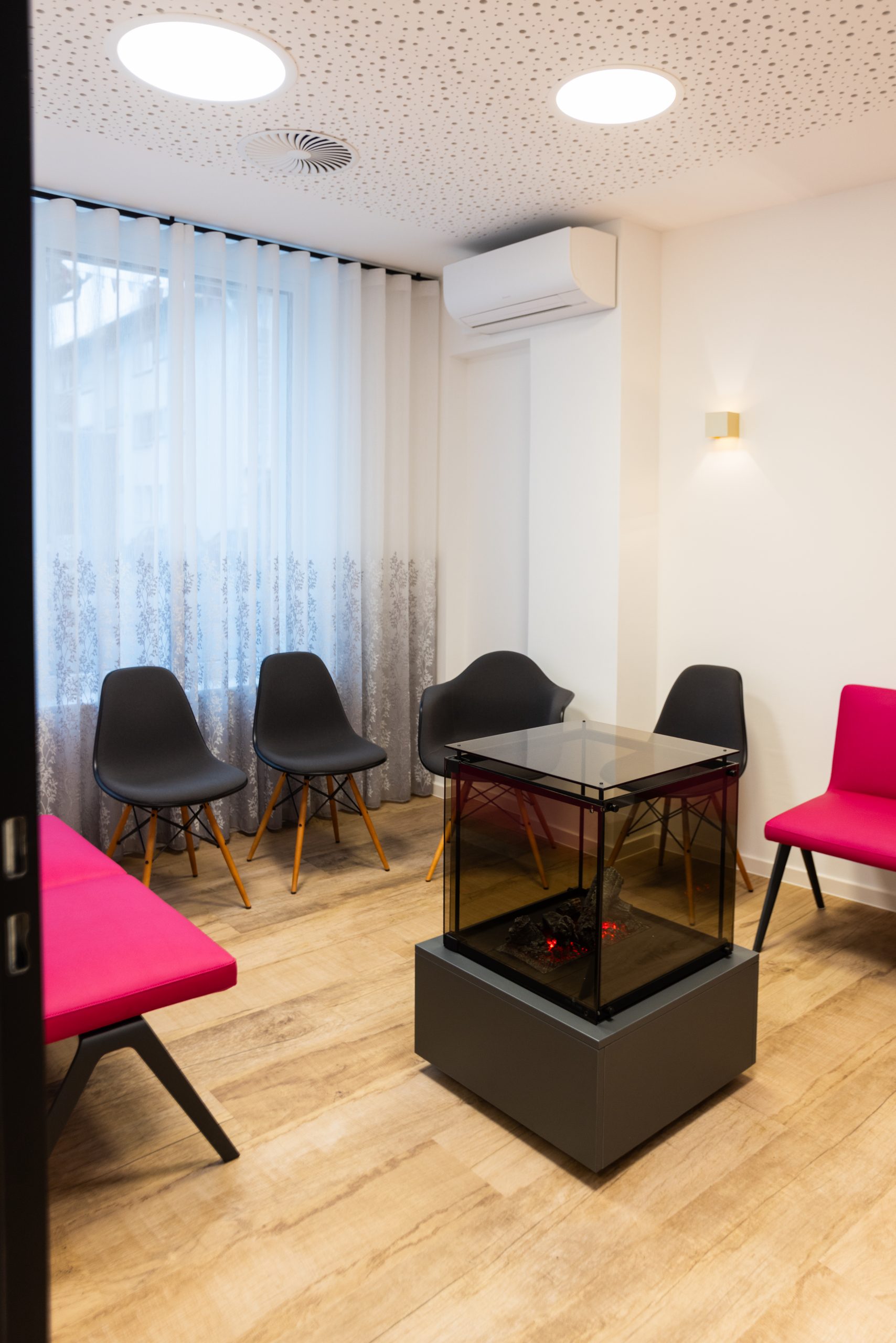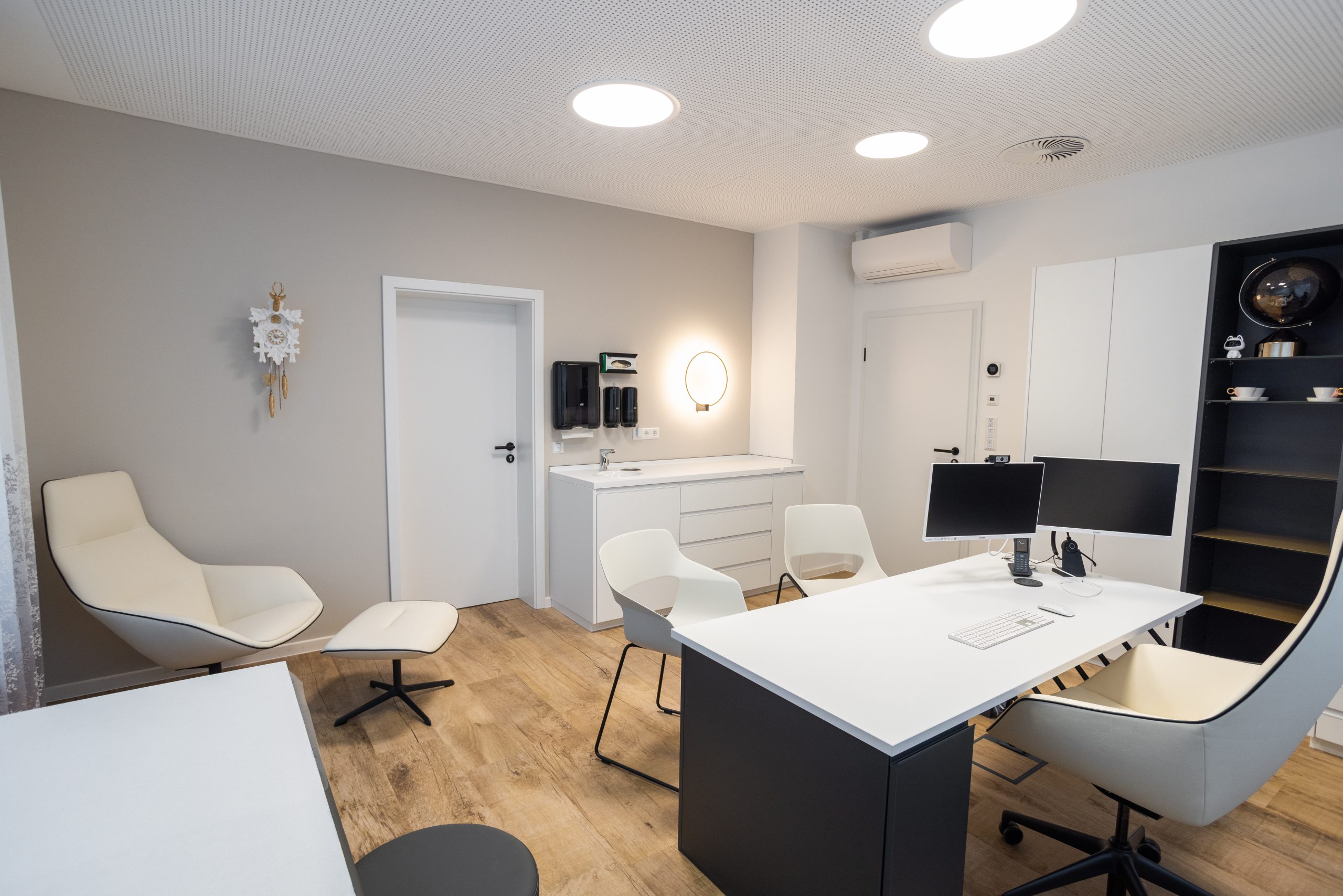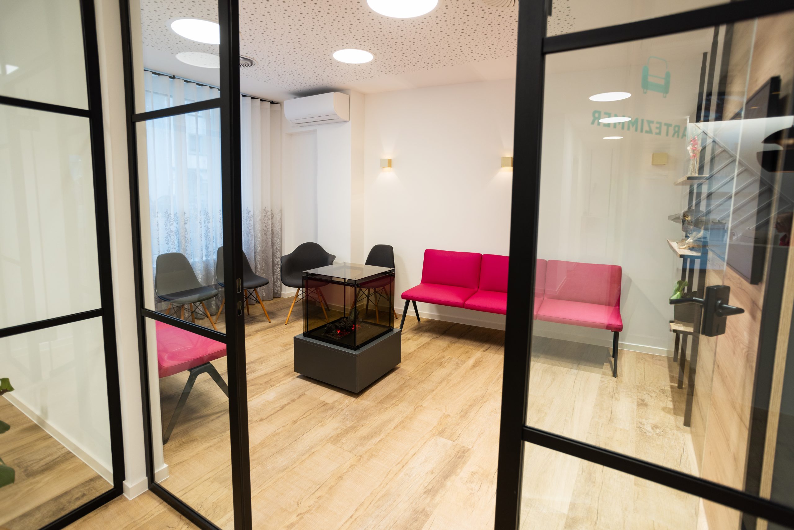In der wunderbaren Zusammenarbeit mit einer tollen Kundin entstand hier eine Landarztpraxis, bei der eines ganz klar im Mittelpunkt stehen sollte: Die Wohlfühlatmosphäre für MitarbeiterInnen und PatientInnen, so dass man sich willkommen und gut behandelt fühlt. Mit viel Liebe zum Detail wurden die Gestaltungsideen nach und nach ergänzt, ein Element fügte sich zum anderen. Durch die ebenfalls vorbildliche Unterstützung des Architekten vor Ort und der Gemeinde, die als Vermieterin den Umbau übernahm, konnte das Projekt vom ersten Kontakt bis zur Eröffnung realisiert werden.
