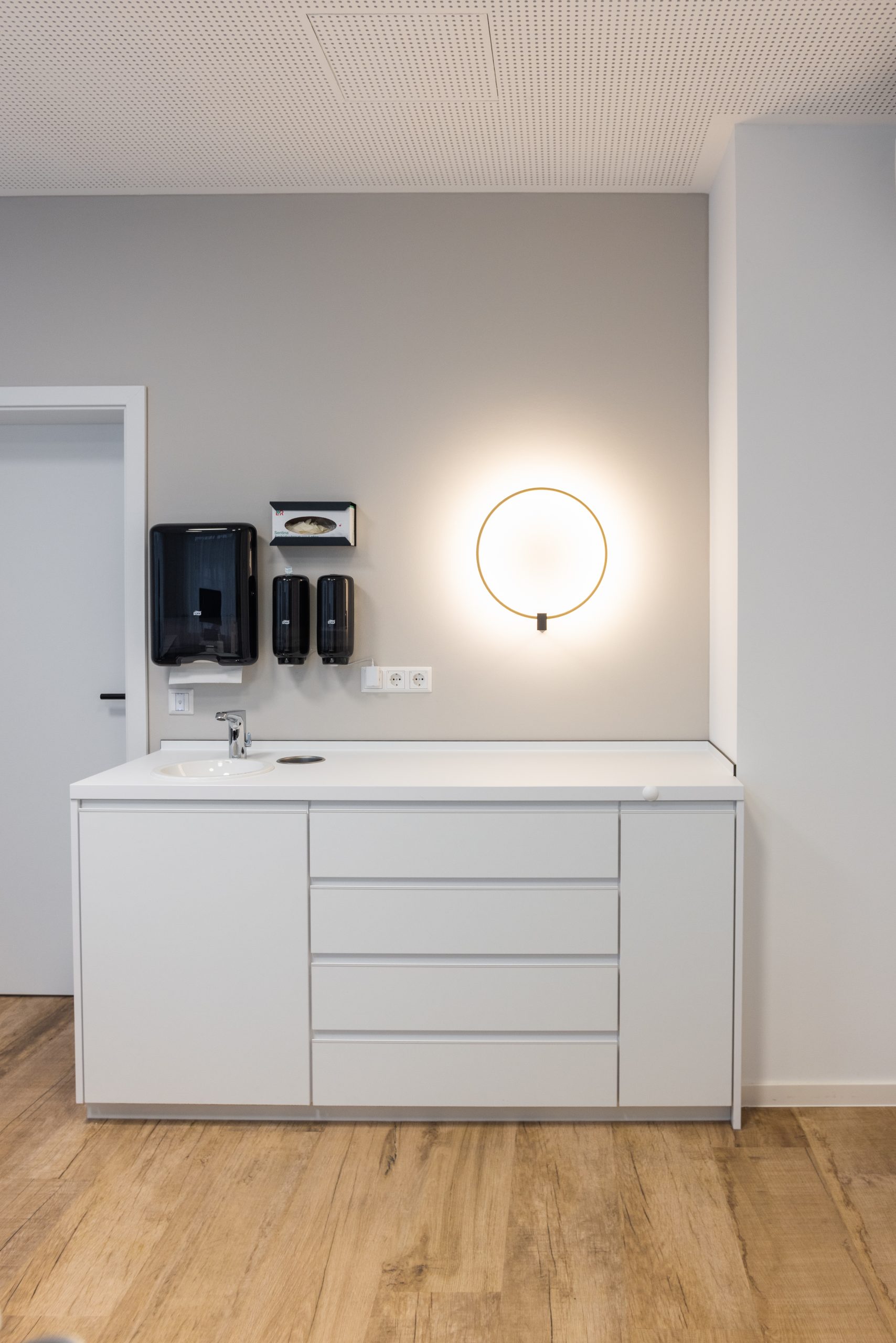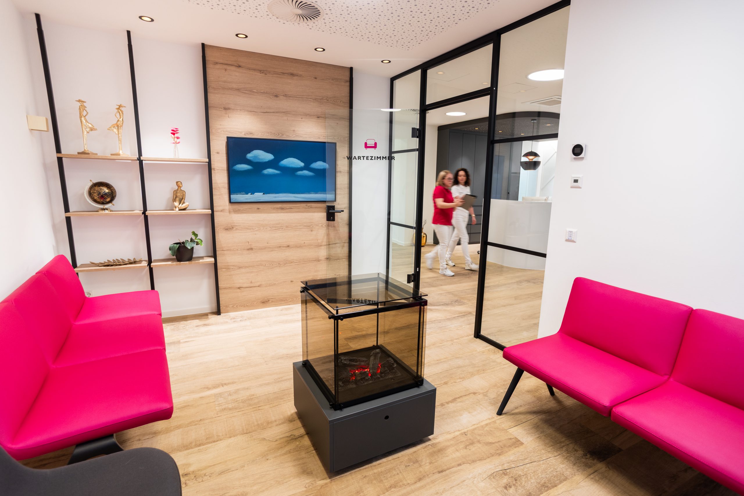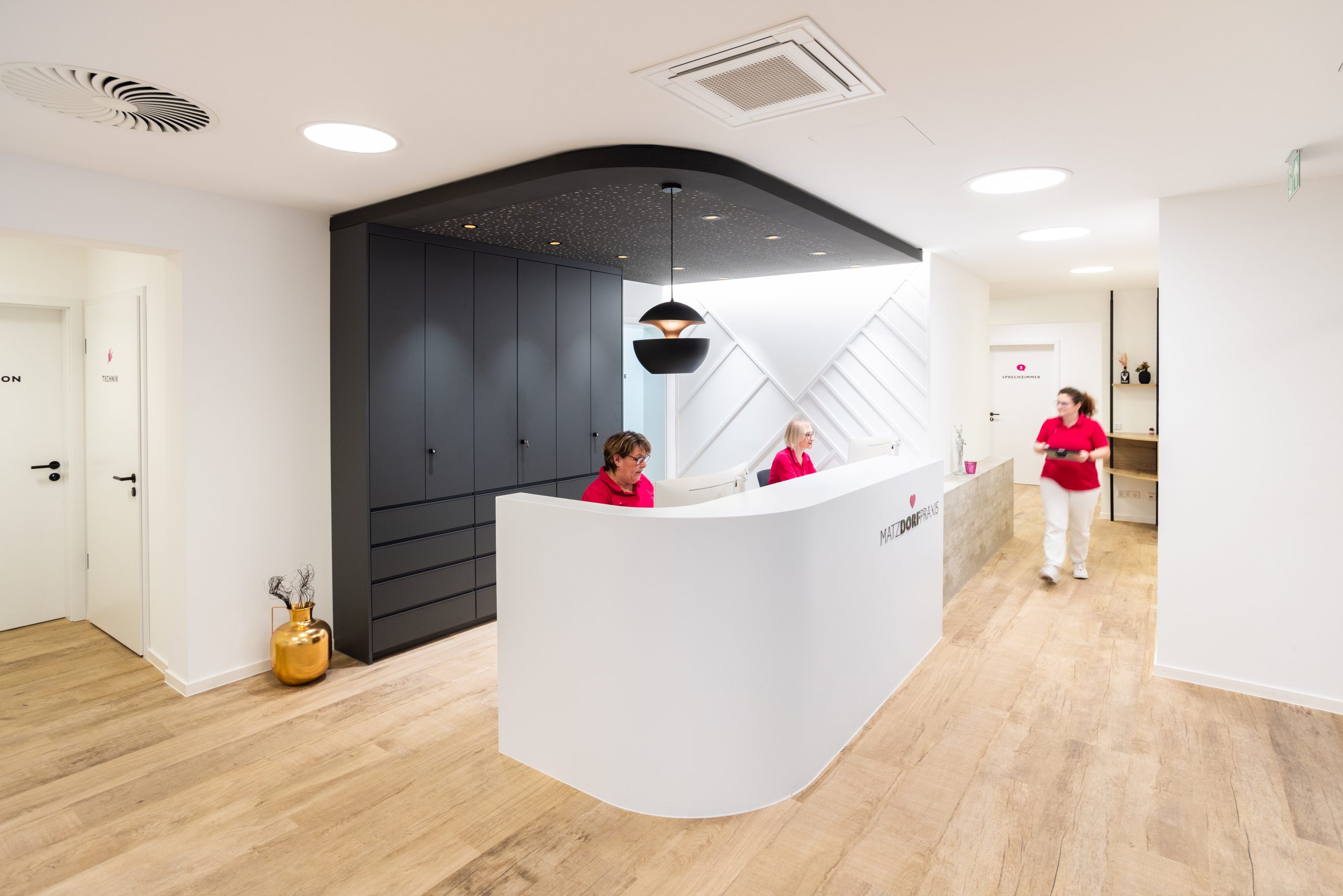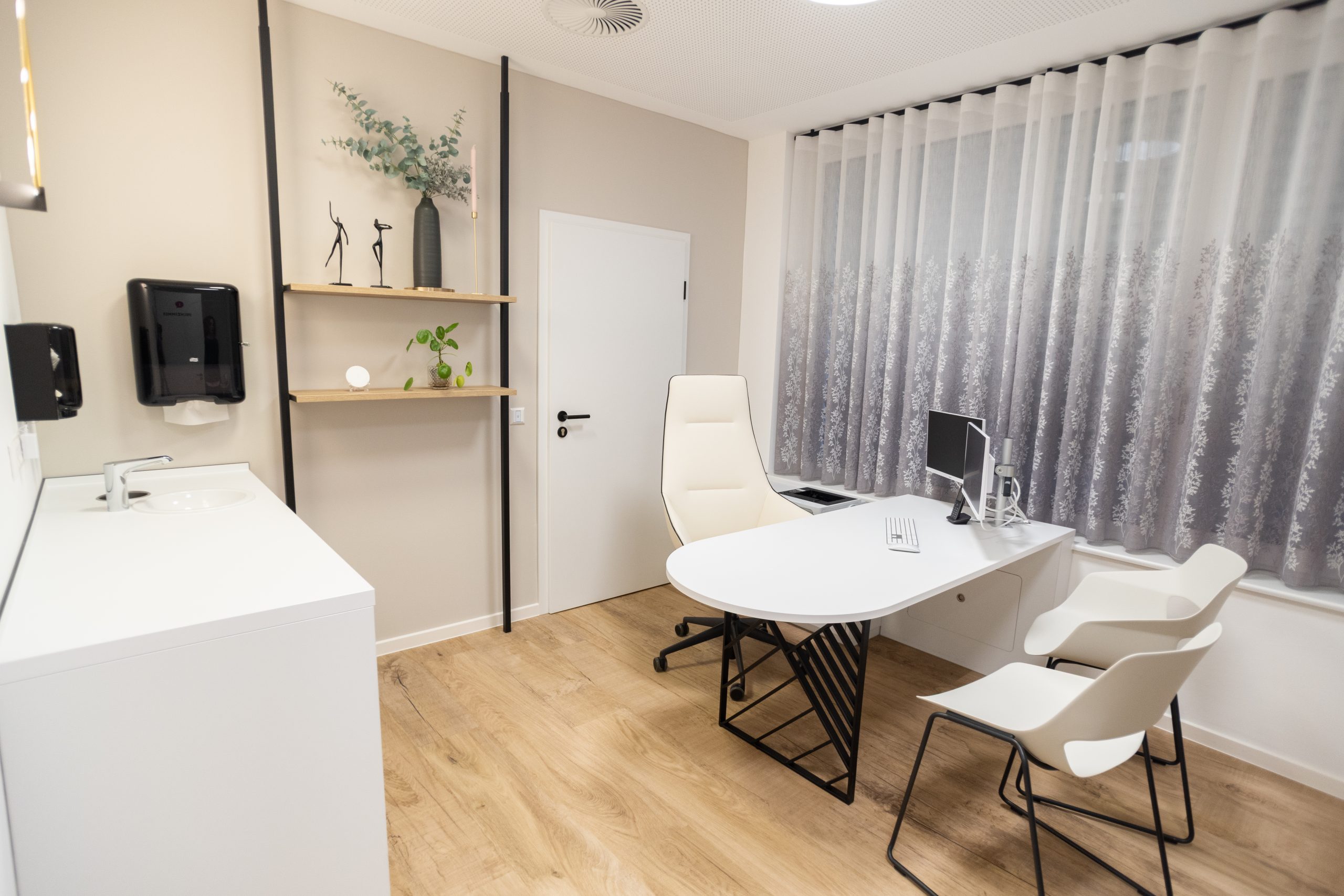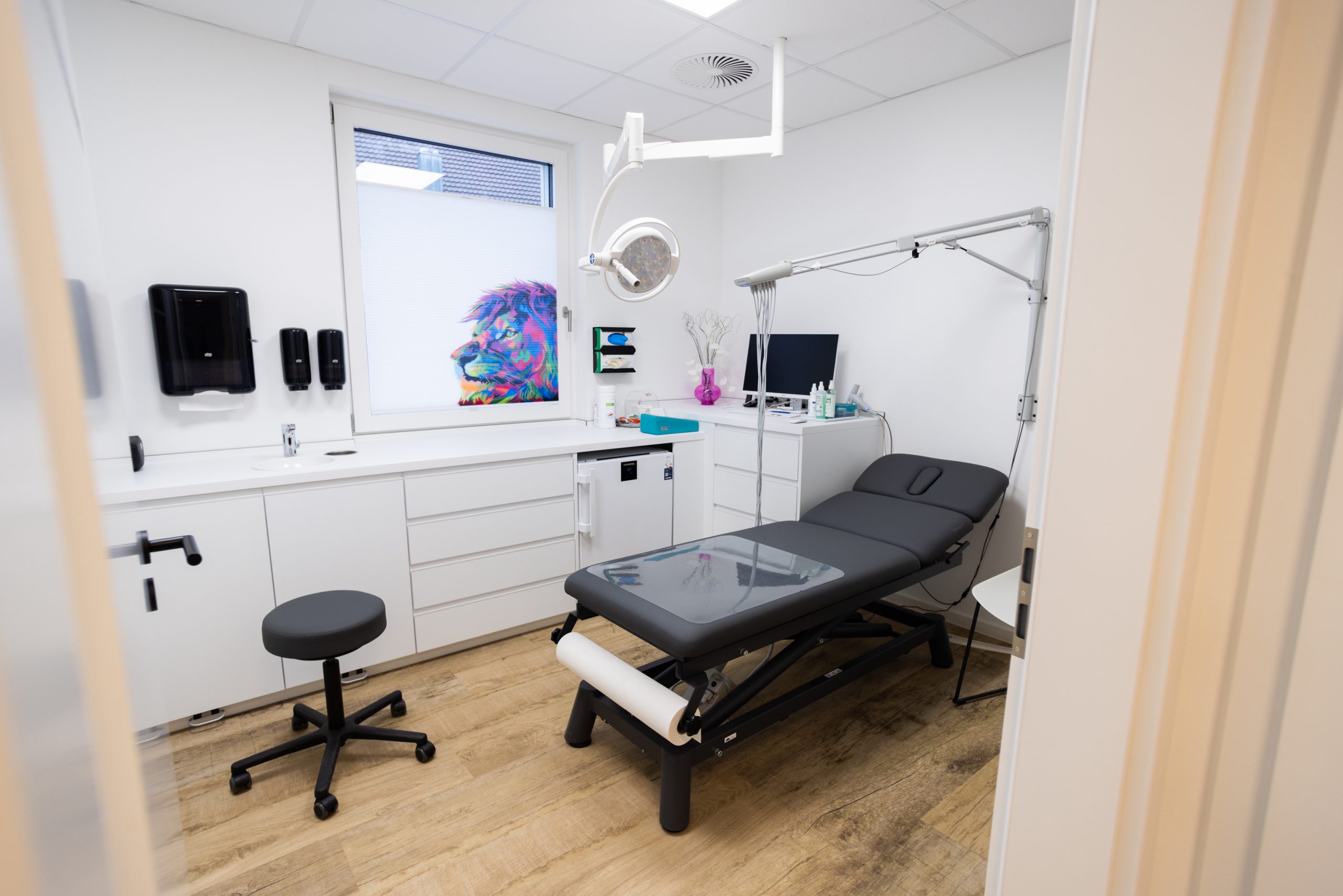 In der wunderbaren Zusammenarbeit mit einer tollen Kundin entstand hier eine Landarztpraxis, bei der eines ganz klar im Mittelpunkt stehen sollte: Die Wohlfühlatmosphäre für MitarbeiterInnen und PatientInnen, so dass man sich willkommen und gut behandelt fühlt. Mit viel Liebe zum Detail wurden die Gestaltungsideen nach und nach ergänzt, ein Element fügte sich zum anderen. Durch die ebenfalls vorbildliche Unterstützung des Architekten vor Ort und der Gemeinde, die als Vermieterin den Umbau übernahm, konnte das Projekt vom ersten Kontakt bis zur Eröffnung realisiert werden.