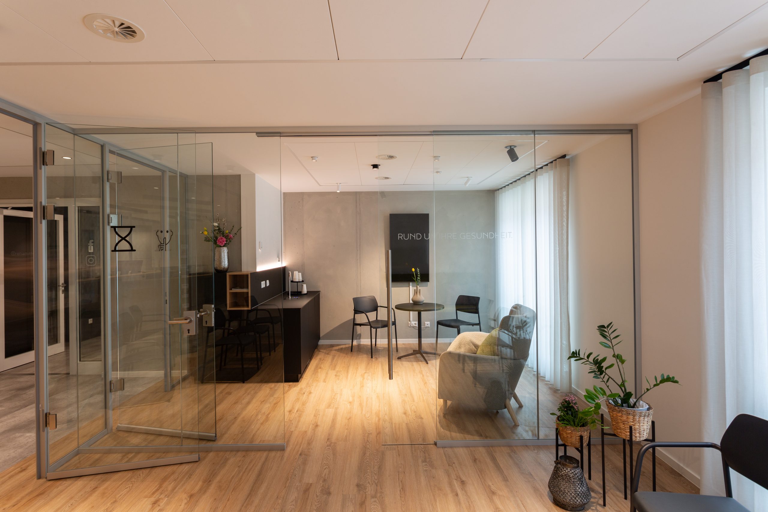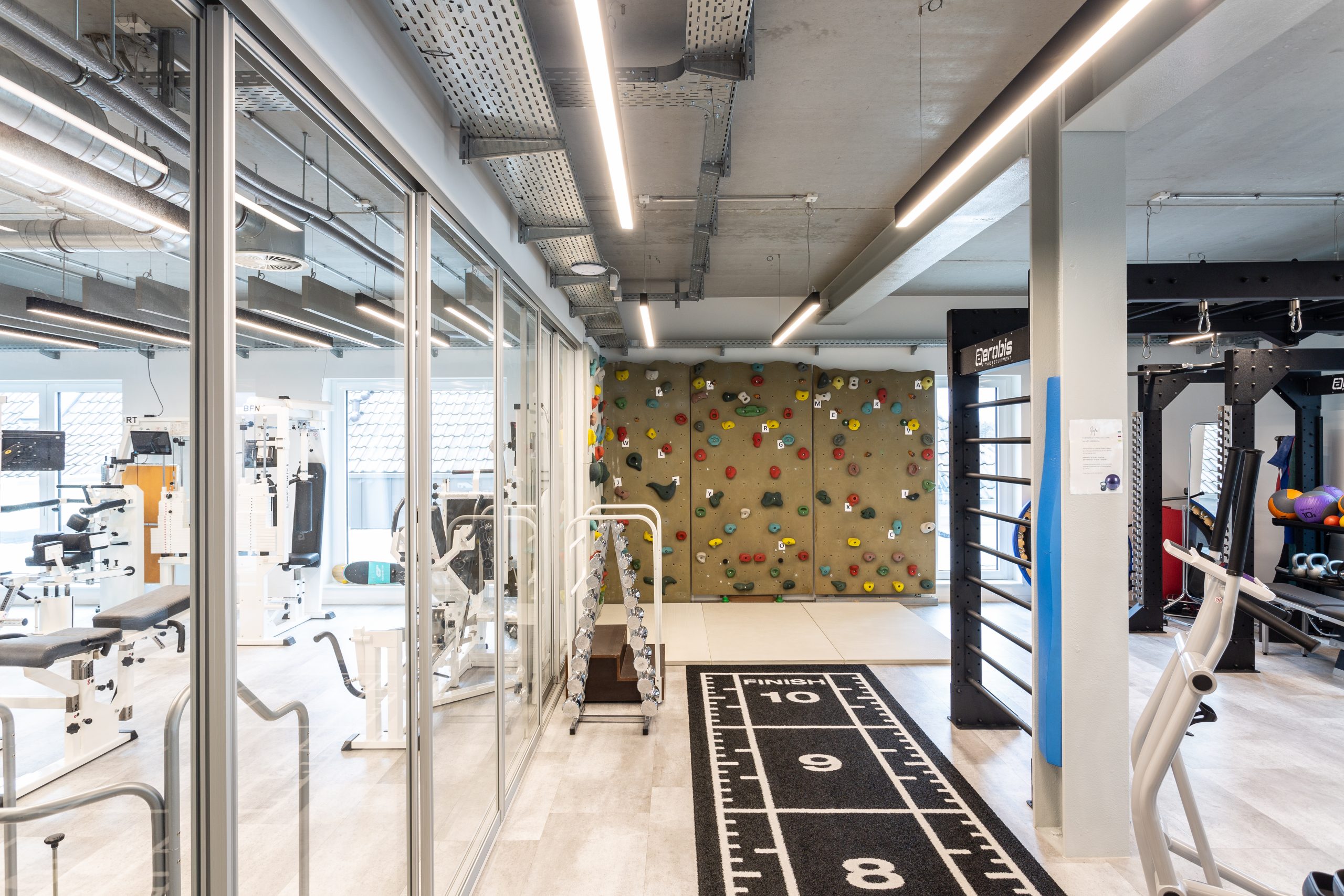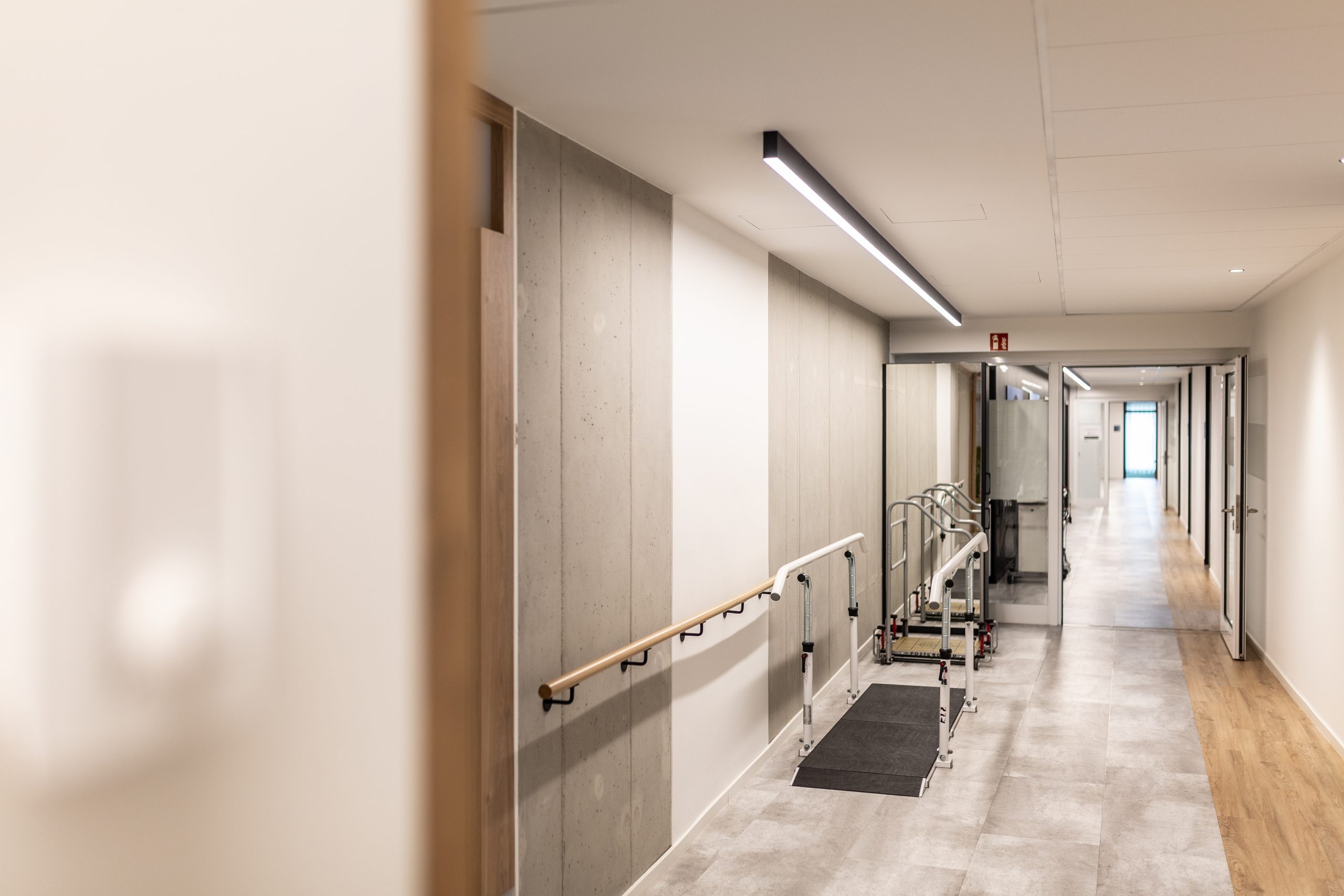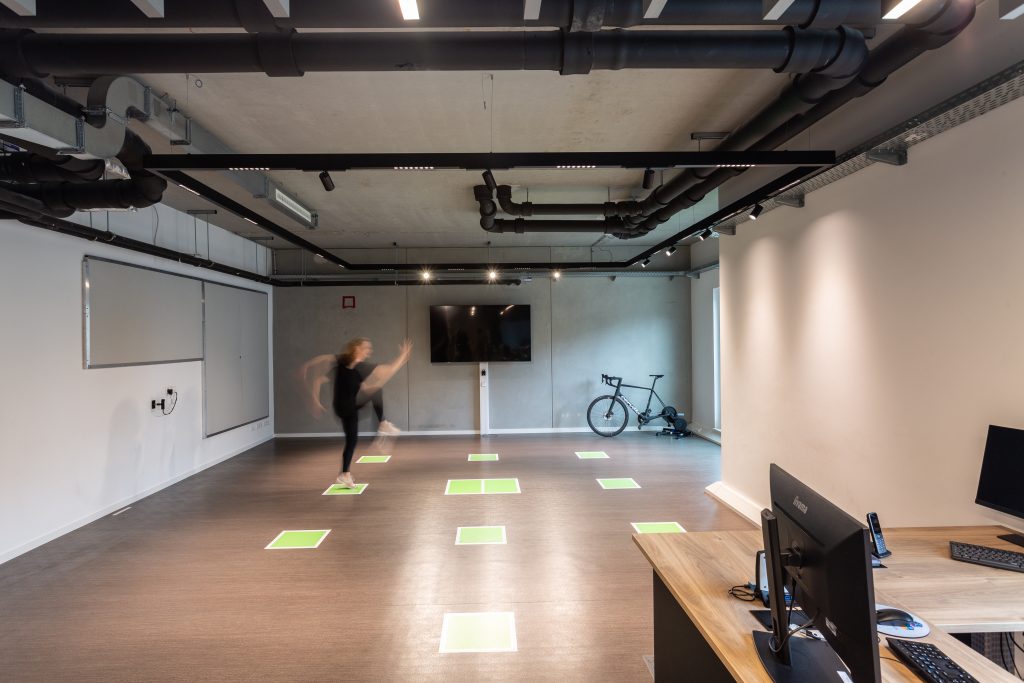 Das “Motion Lab” im 2.OG bildet das Herzstück des Rehazentrums. Auf den ersten Blick unscheinbar, beinhaltet diese Fläche modernste Diagnostik- Apparate, mehrere Kameras, Bewegungssensoren im Fußboden und Druckmessgeräte. Hochleistungssportler die von weither anreisen, Geriatrie- Patienten und örtliche Sportgruppen können Ihr Potential entfalten durch diese gezielte Analyse und spätere Betreuung.